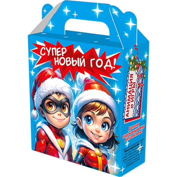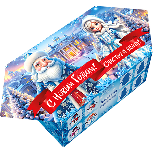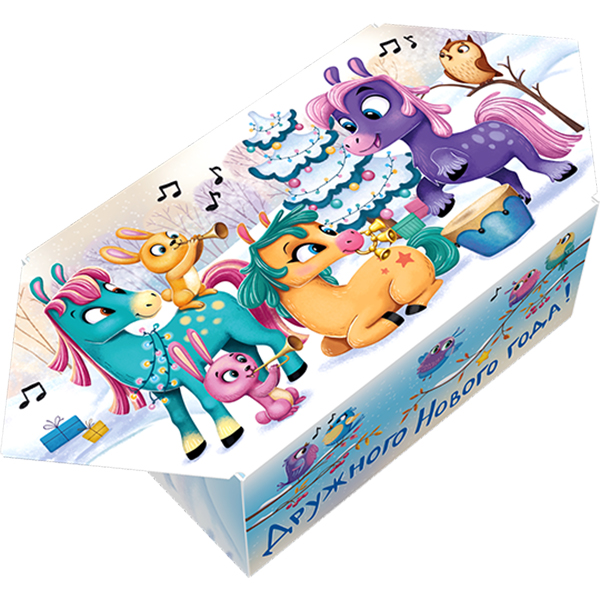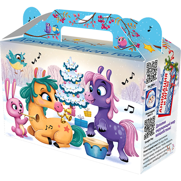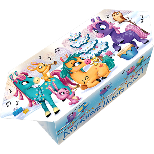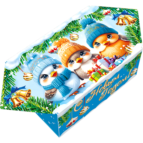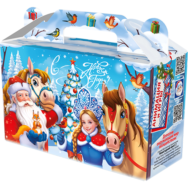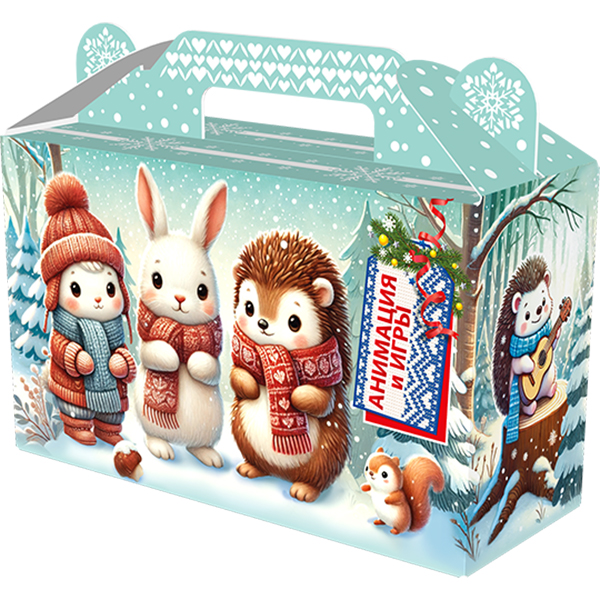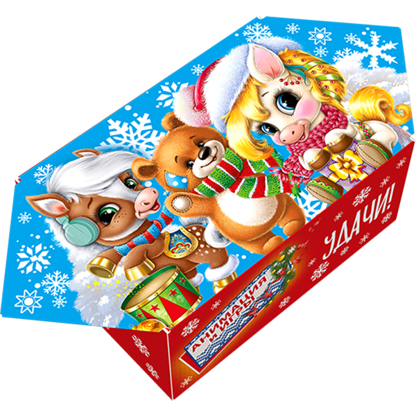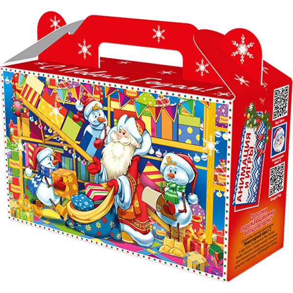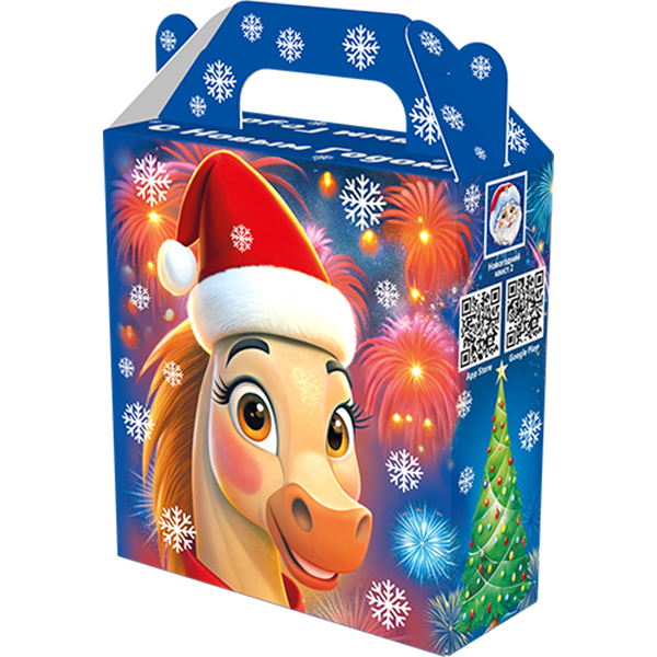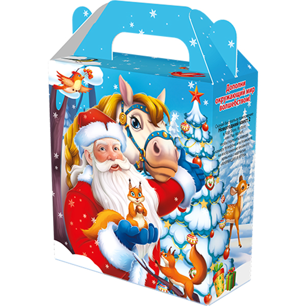 Детские Новогодние подарки в картонной упаковке - самый доступный вариант для покупателей с небольшим бюджетом. Тем не менее, конфеты в таком подарке по качеству не отличаются от конфет в более дорогих подарках из жести или в мягкой игрушке.