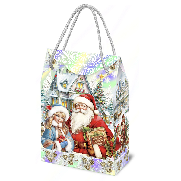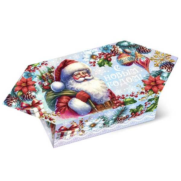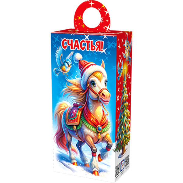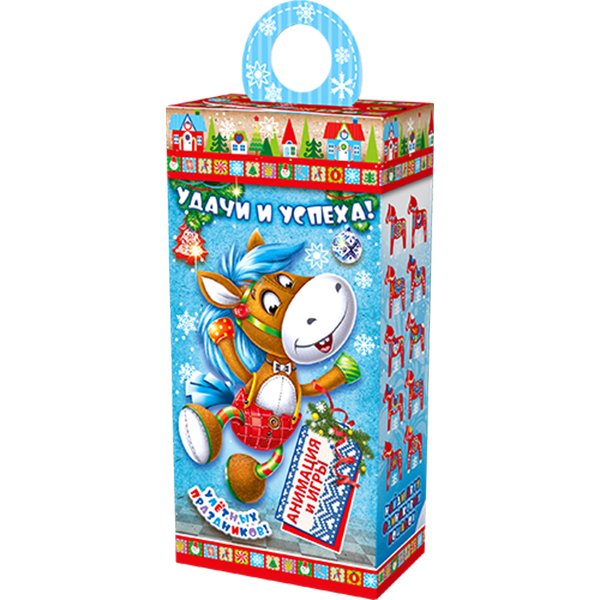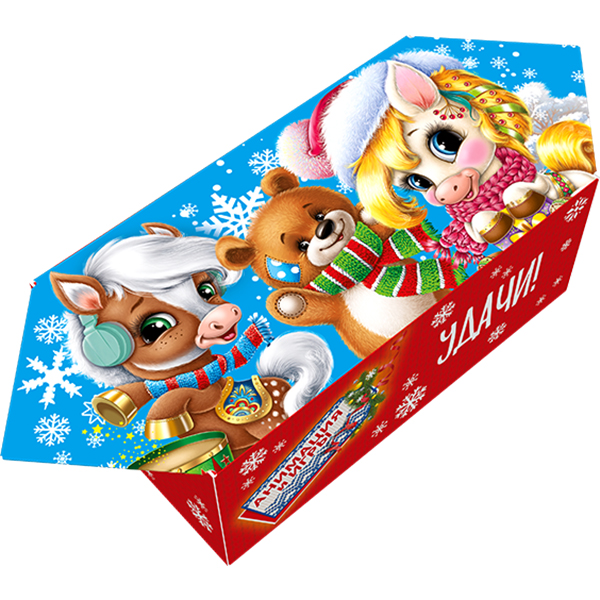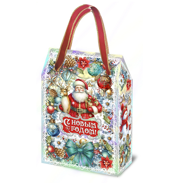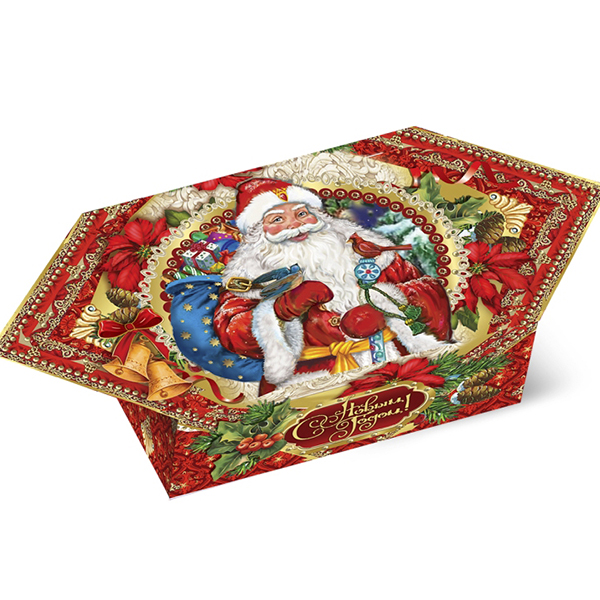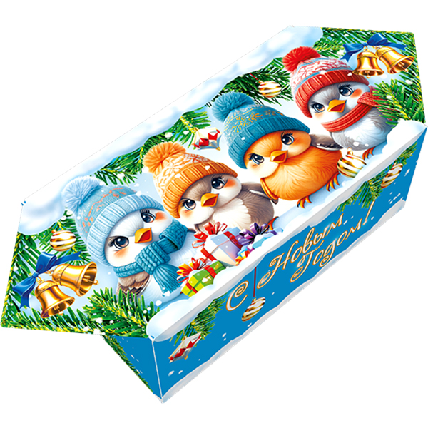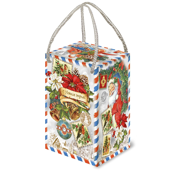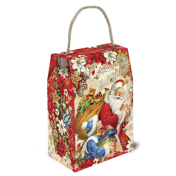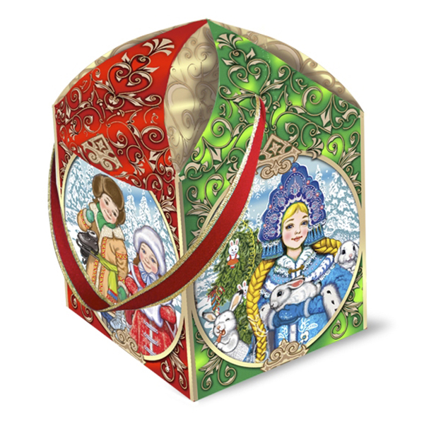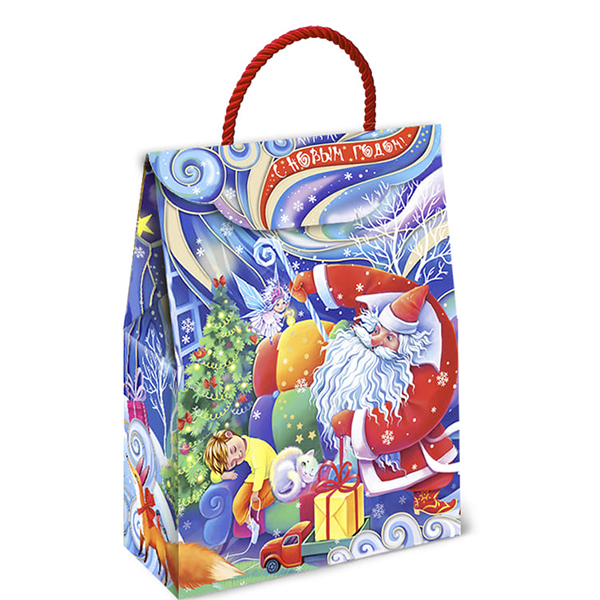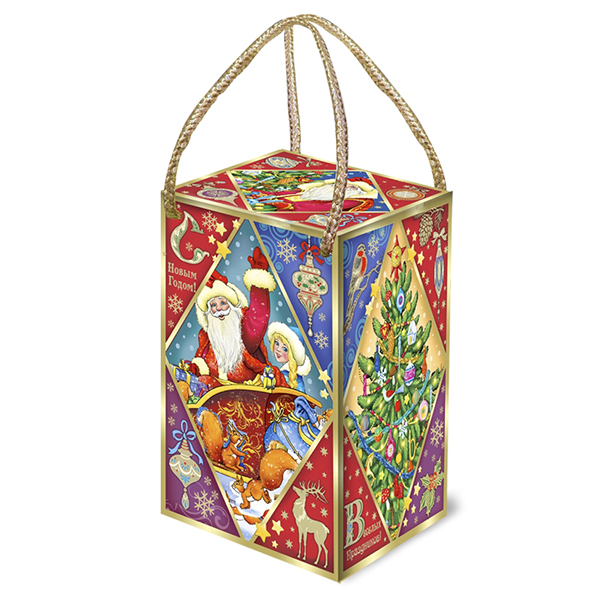 Детские Новогодние подарки в картонной упаковке - самый доступный вариант для покупателей с небольшим бюджетом. Тем не менее, конфеты в таком подарке по качеству не отличаются от конфет в более дорогих подарках из жести или в мягкой игрушке.