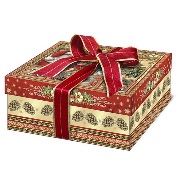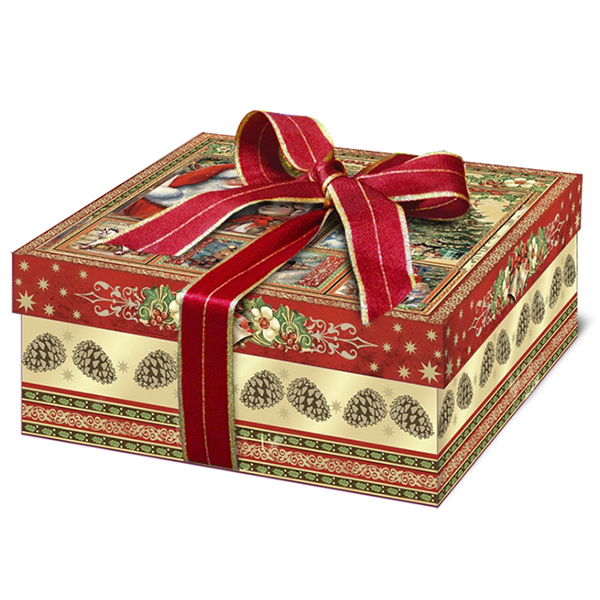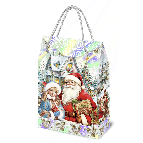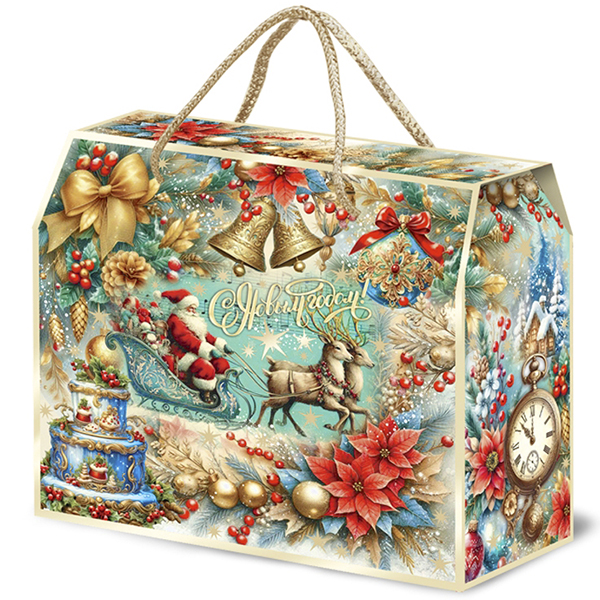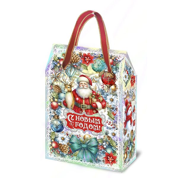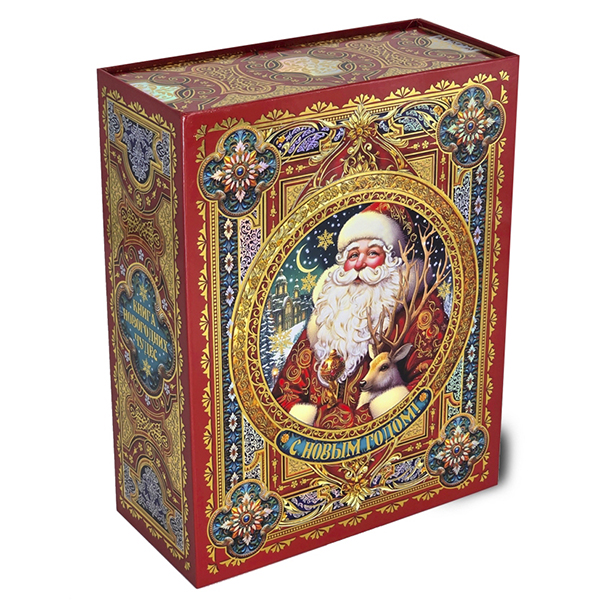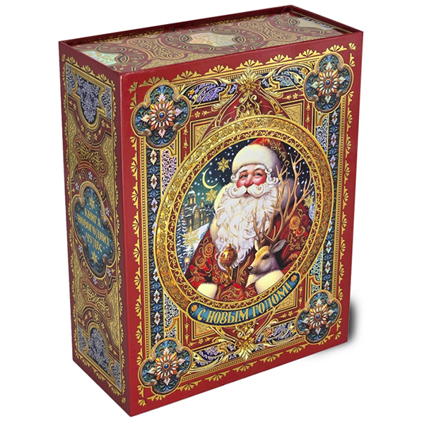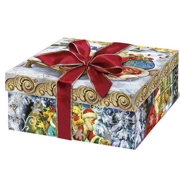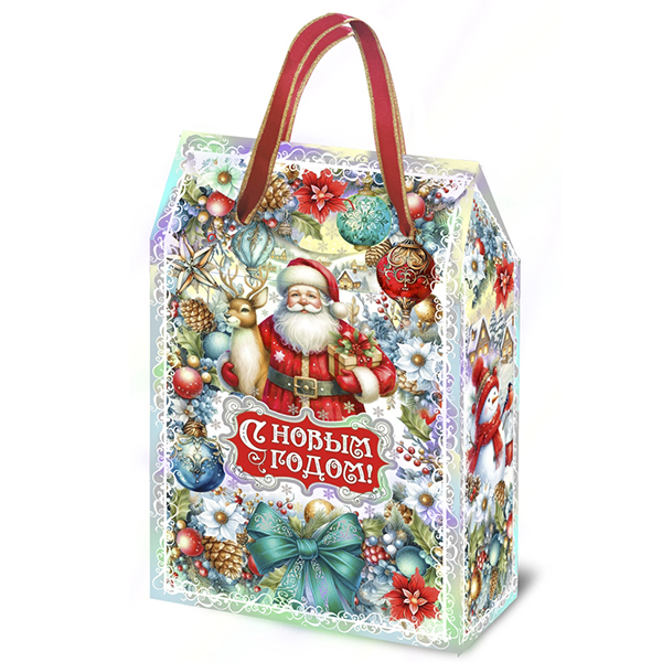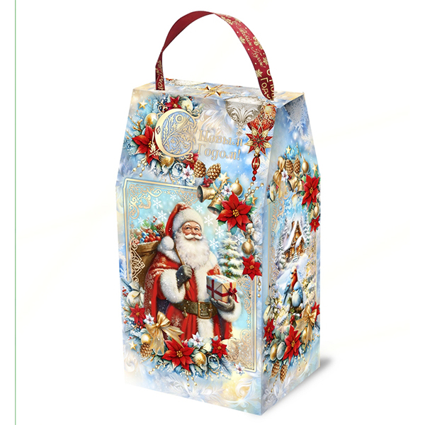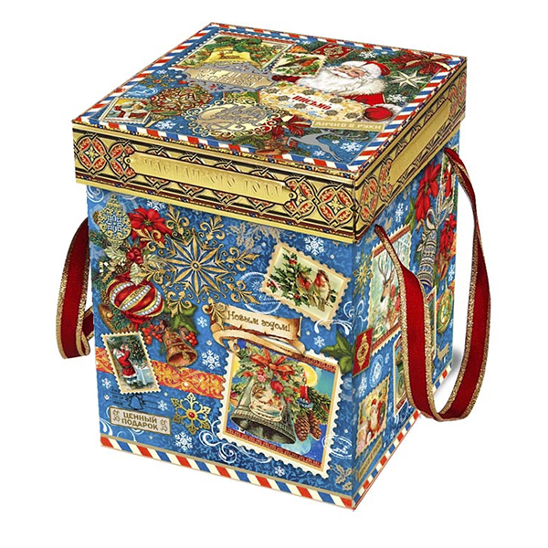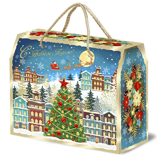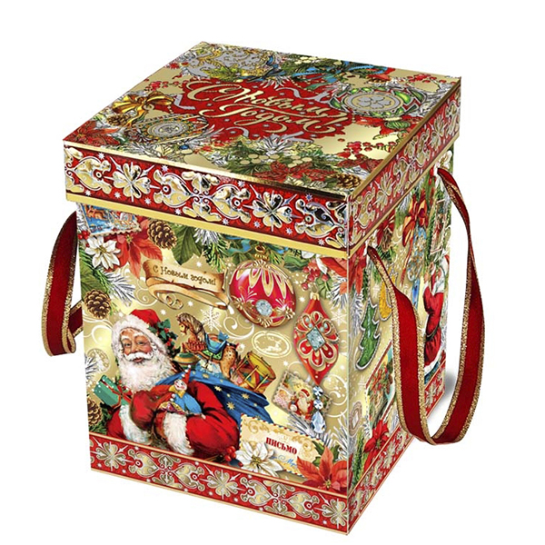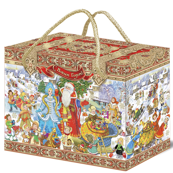 Детские Новогодние подарки в картонной упаковке - самый доступный вариант для покупателей с небольшим бюджетом. Тем не менее, конфеты в таком подарке по качеству не отличаются от конфет в более дорогих подарках из жести или в мягкой игрушке.