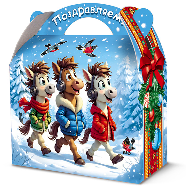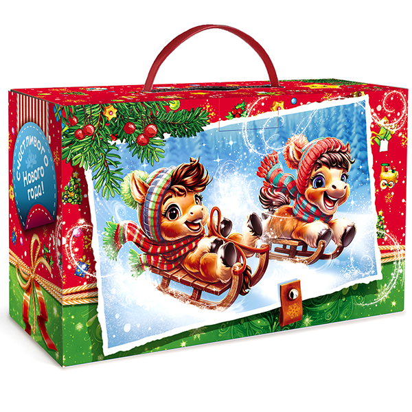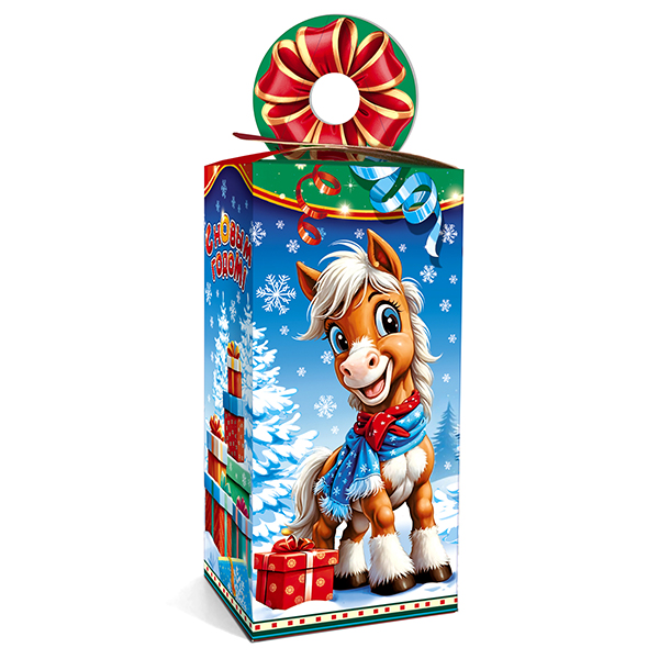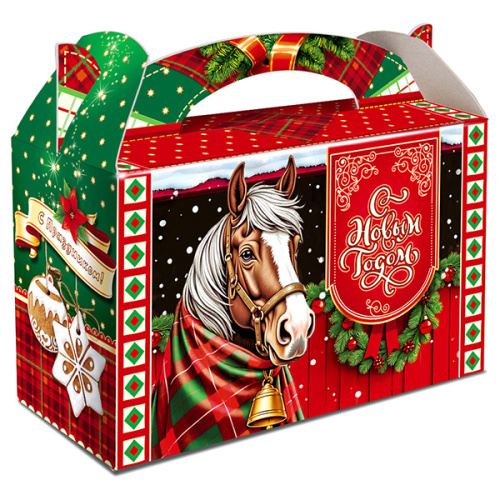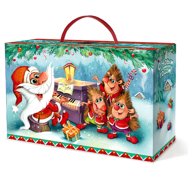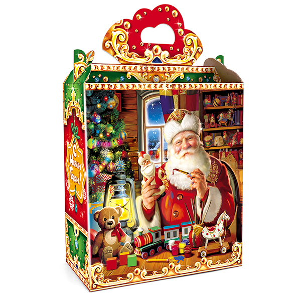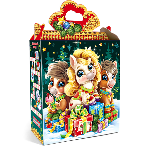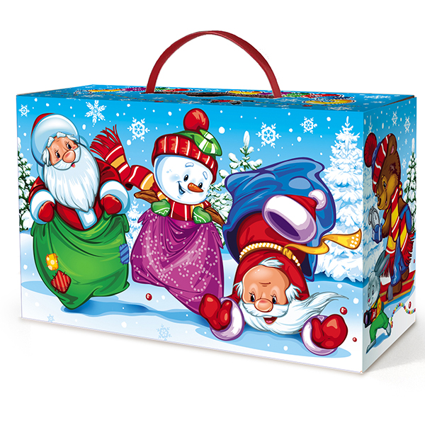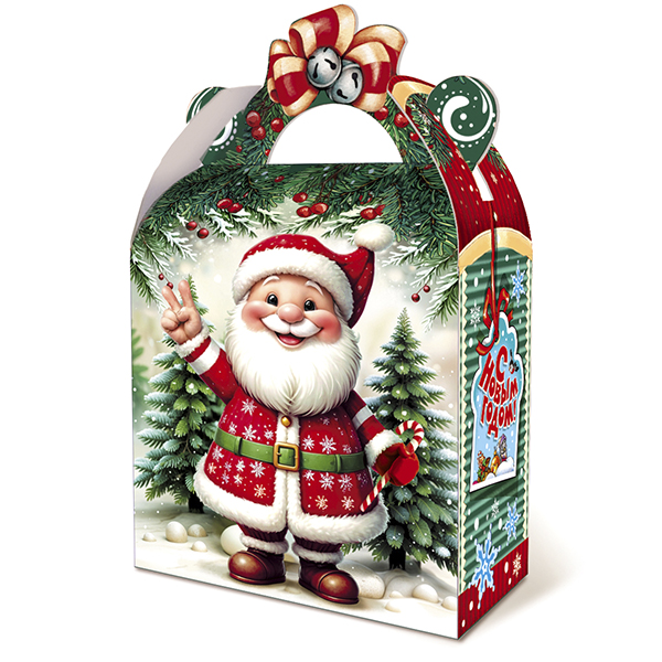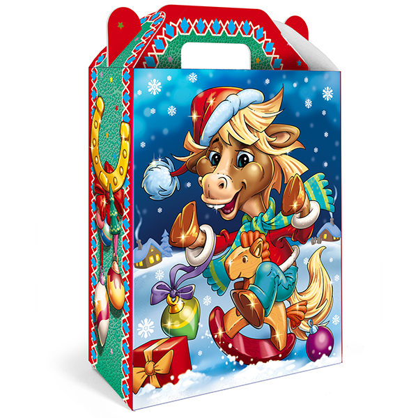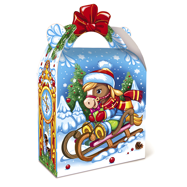 Детские Новогодние подарки в картонной упаковке - самый доступный вариант для покупателей с небольшим бюджетом. Тем не менее, конфеты в таком подарке по качеству не отличаются от конфет в более дорогих подарках из жести или в мягкой игрушке.