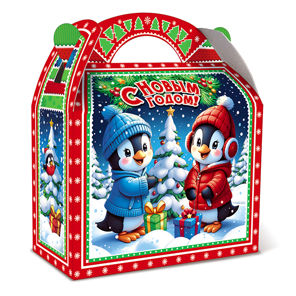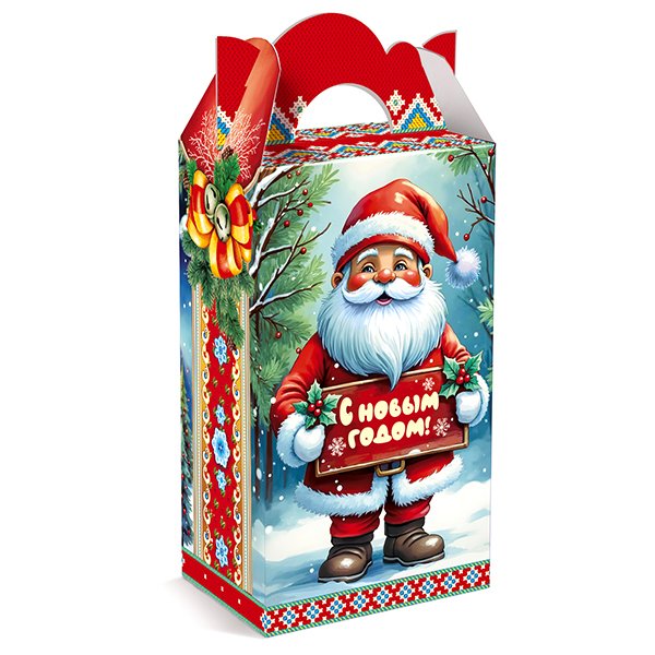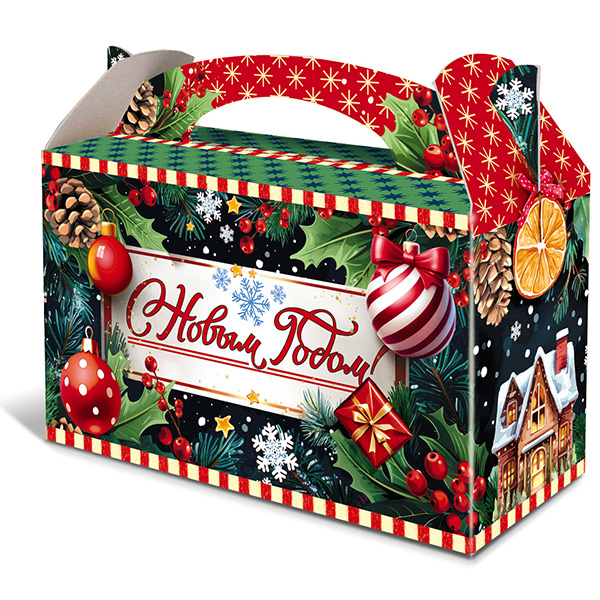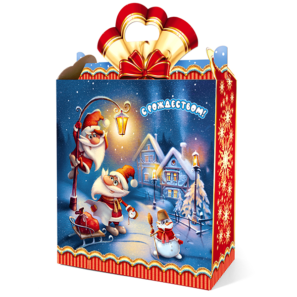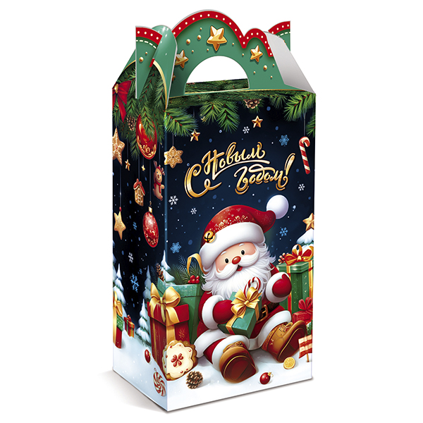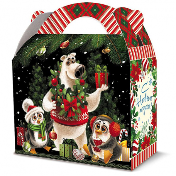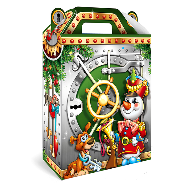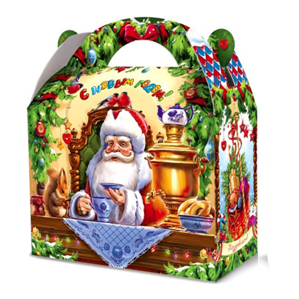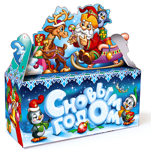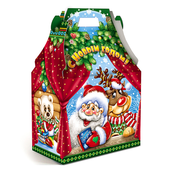 Детские Новогодние подарки в картонной упаковке - самый доступный вариант для покупателей с небольшим бюджетом. Тем не менее, конфеты в таком подарке по качеству не отличаются от конфет в более дорогих подарках из жести или в мягкой игрушке.