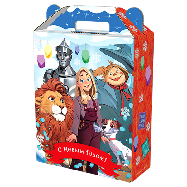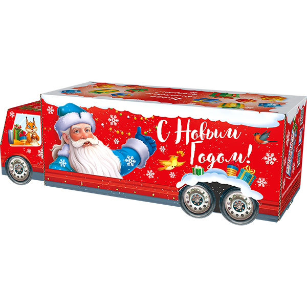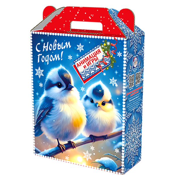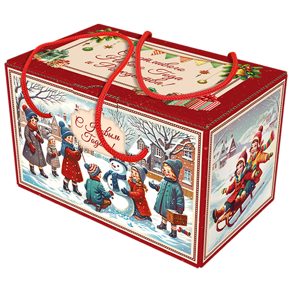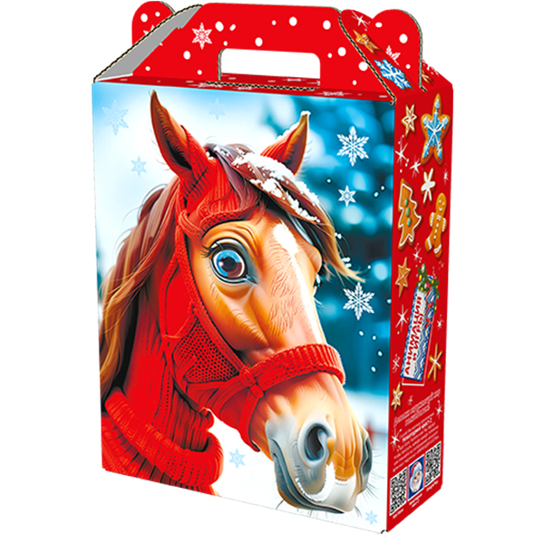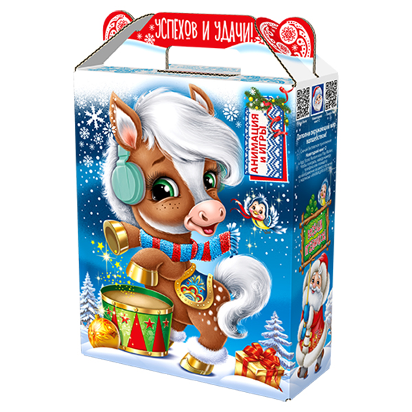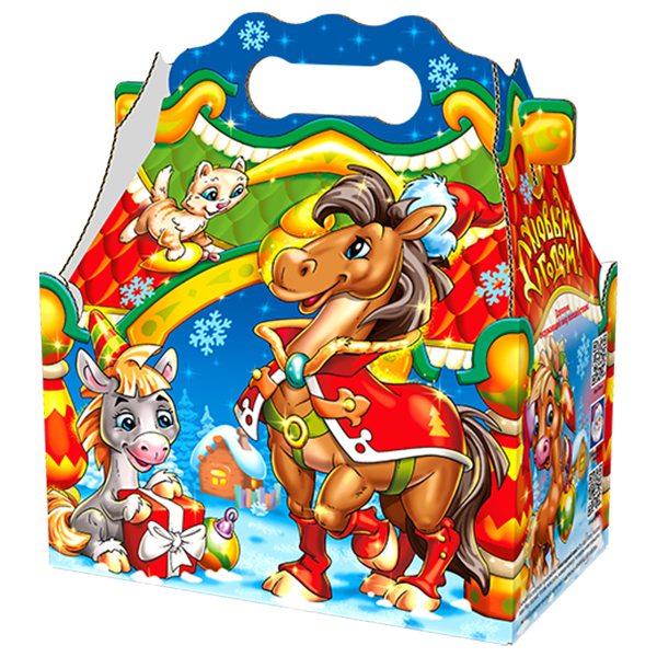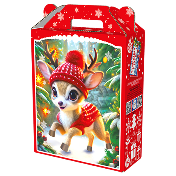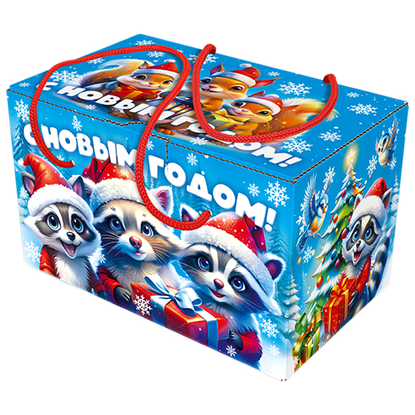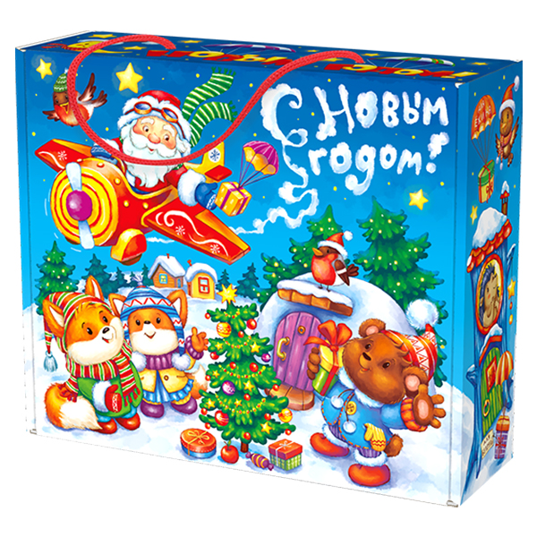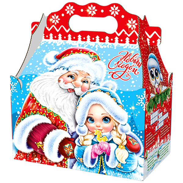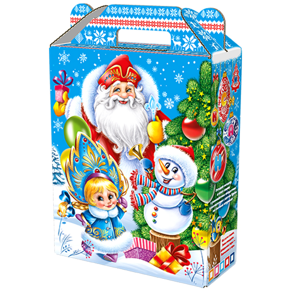 Детские Новогодние подарки в картонной упаковке - самый доступный вариант для покупателей с небольшим бюджетом. Тем не менее, конфеты в таком подарке по качеству не отличаются от конфет в более дорогих подарках из жести или в мягкой игрушке.