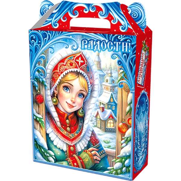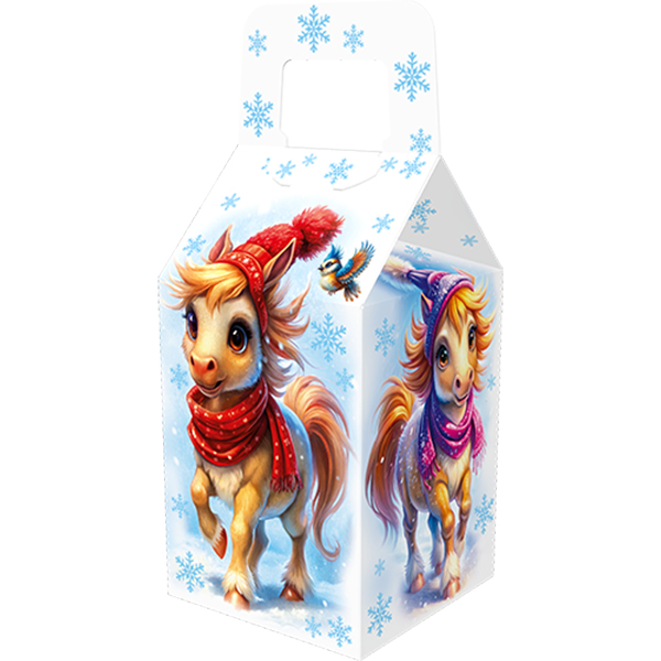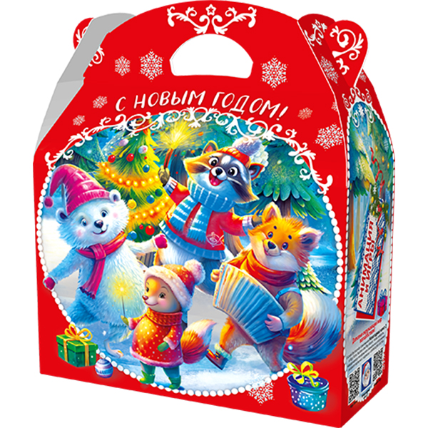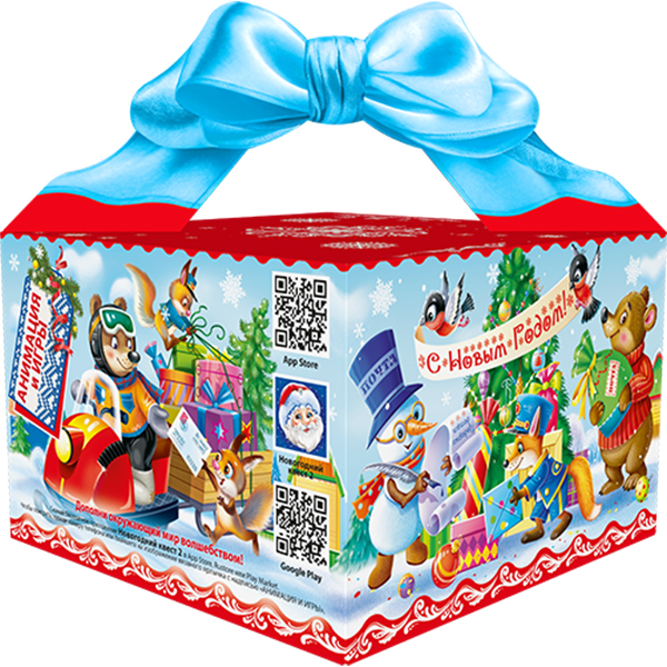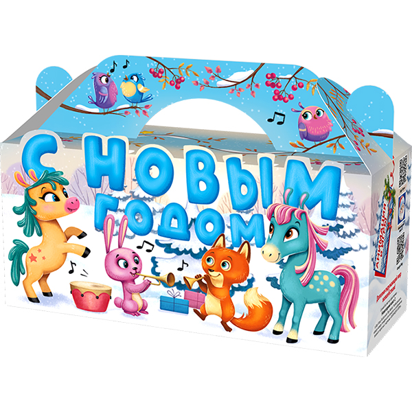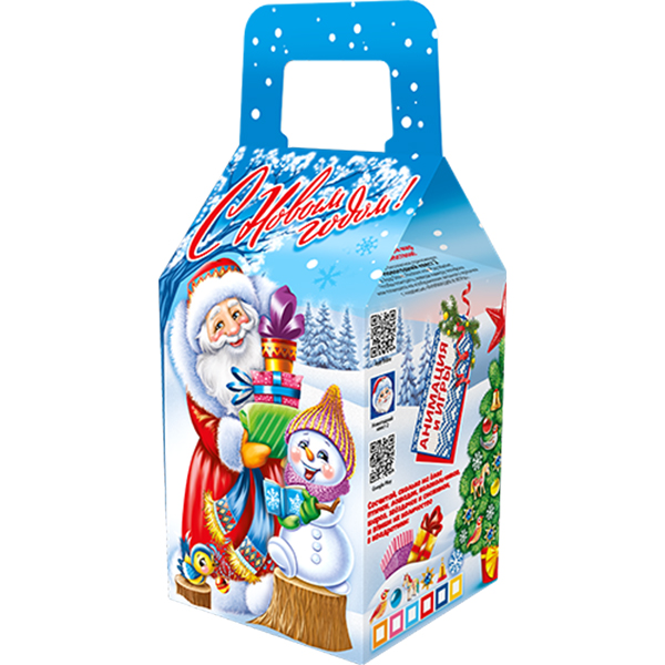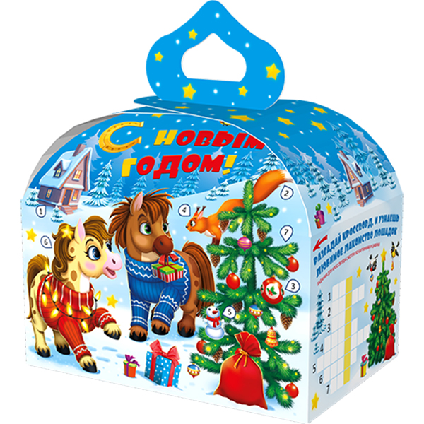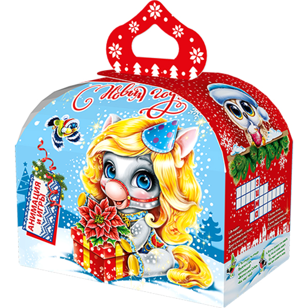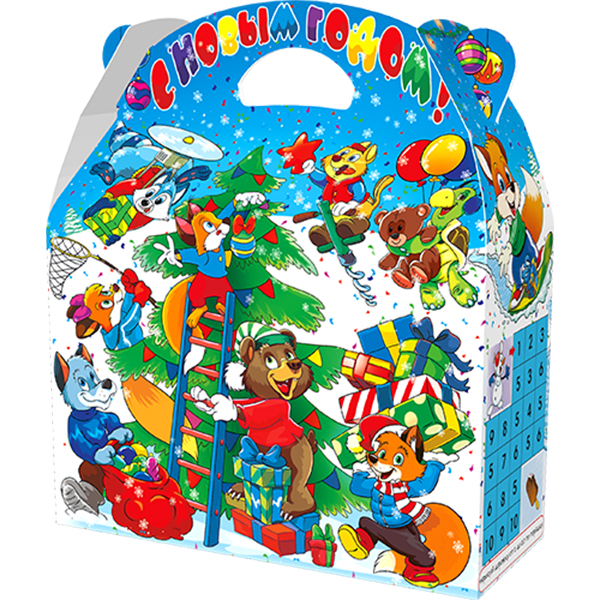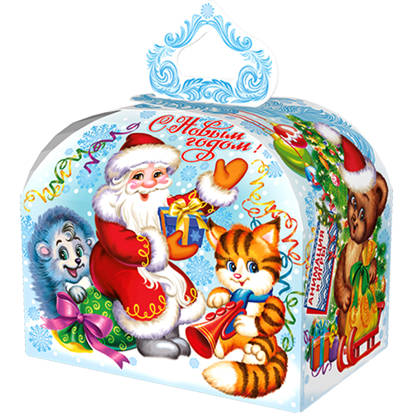 Детские Новогодние подарки в картонной упаковке - самый доступный вариант для покупателей с небольшим бюджетом. Тем не менее, конфеты в таком подарке по качеству не отличаются от конфет в более дорогих подарках из жести или в мягкой игрушке.
