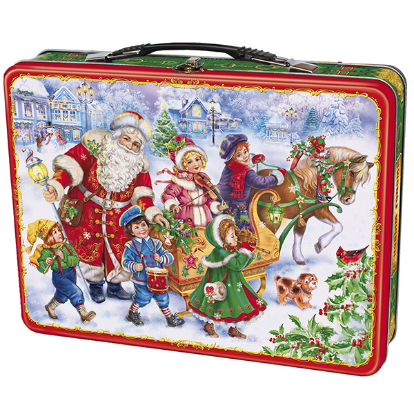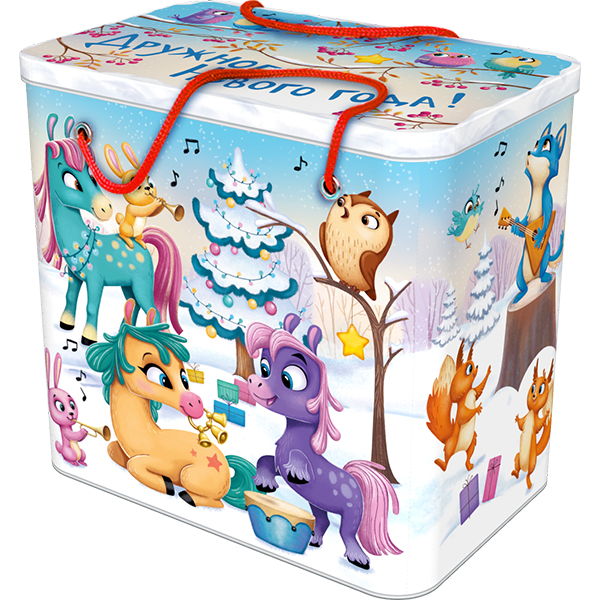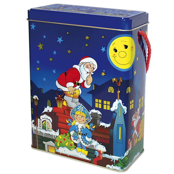 Детские Новогодние подарки в жестяной упаковке всегда превосходно выглядят и дарят детям настоящее праздничное настроение. Подарки отличаются видом упаковки, формой и различными иллюстрациями на Новогодние темы. В каждом подарке Вы найдете свежие и вкусные конфеты, шоколад и вкусную карамель.